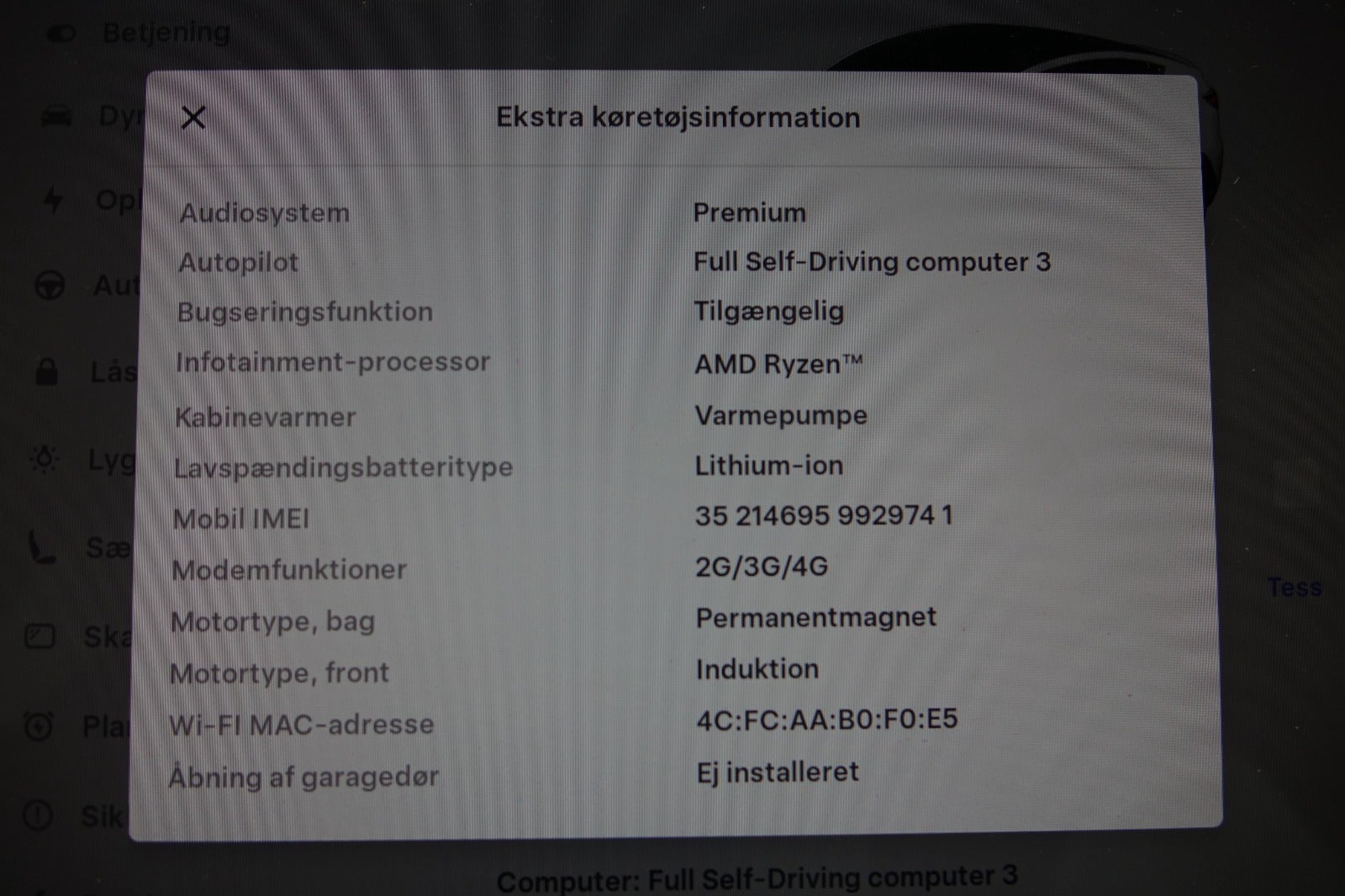 Multifunktionsrat, læderrat, splitbagsæde, el indst. førersæde m. memory, højdejust. forsæder, el indst. forsæder, 19" alufælge, glastag, fuld led forlygter, matrix led forlygter, mørktonede ruder i bag, aftageligt træk, el-sidespejle m/varme, varme i rat, 2 zone klima, varmepumpe, nøglefri adgang, adaptiv fartpilot, aut. nedbl. bakspejl, sædevarme, varme i bagsæde, 4x el-ruder, udv. temp. måler, nøglefri tænding, el betjent bagklap, trådløs mobilopladning, cd/radio, navigation, musikstreaming via bluetooth, håndfrit til mobil, regnsensor, parkeringssensor (bag), parkeringssensor (for), bakkamera, dæktryksmåler, skiltegenkendelse, isofix, fjernlysassistent, blindvinkelsassistent, automatisk nødbremsesystem, vognbaneassistent.